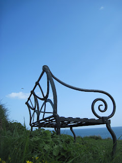 Spent most of the day in and around Stonehaven, sketching, painting, taking photographs and watching the world go by. Very pleasant in the spring sunshine. Cooler when the sun disappeared behind a cloud. Ended up taking lots of photos of this wrought iron seat on the clifftop just south of the town. I also drew it a couple of times to practise my perspective - trickier than it first appears!
